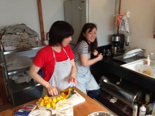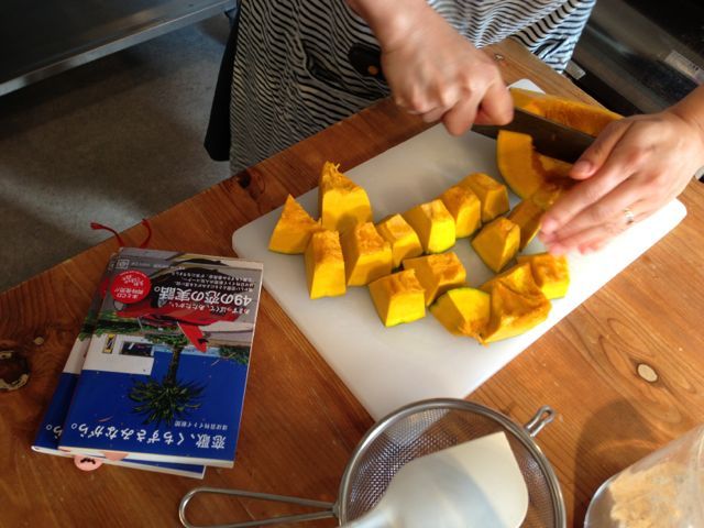 カボチャを料理する様子を