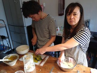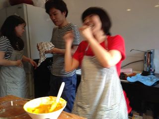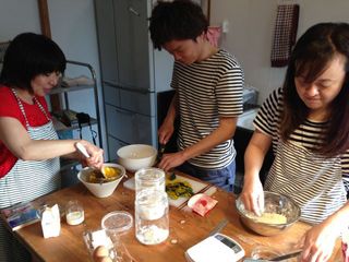 ええとね、パイをつくりながらね、