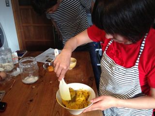パンプキンパイづくり、