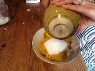 裏ごししたカボチャに、色々入れるようです。