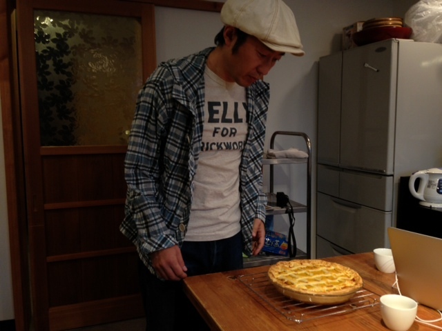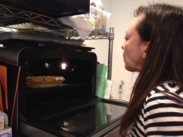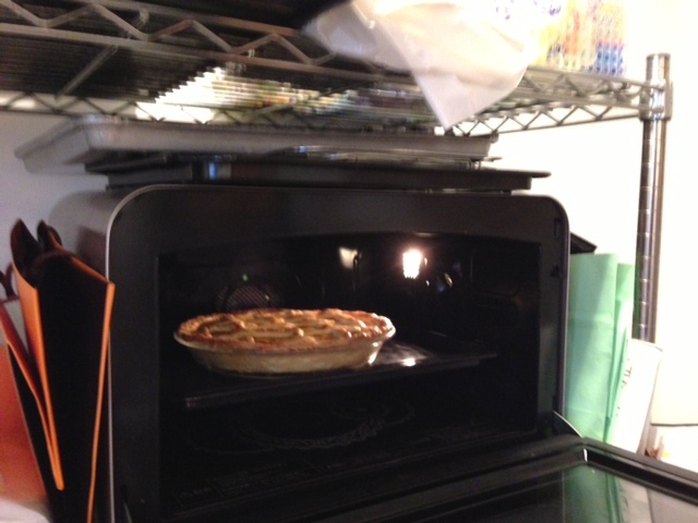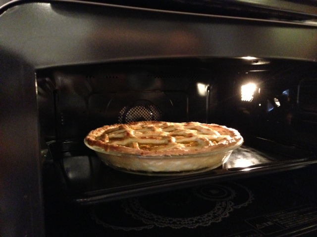いま、パイを焼いているところなので、