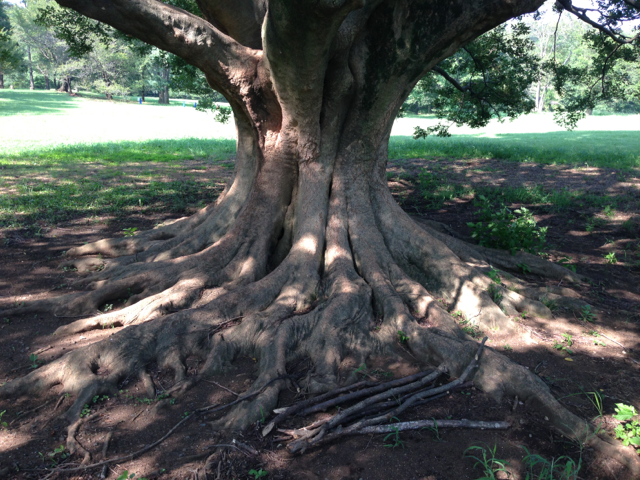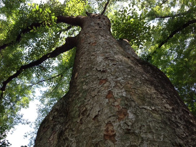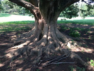 樹の幹は、なんだかすごい状態。 何本もが合わさったような幹でした。 木肌は、灰褐色。