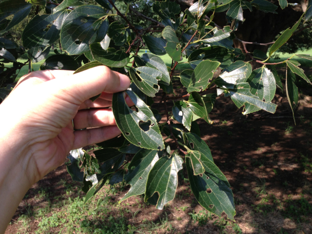 これが、エノキ。 大木です。 葉っぱはずいぶん虫に食べられています。