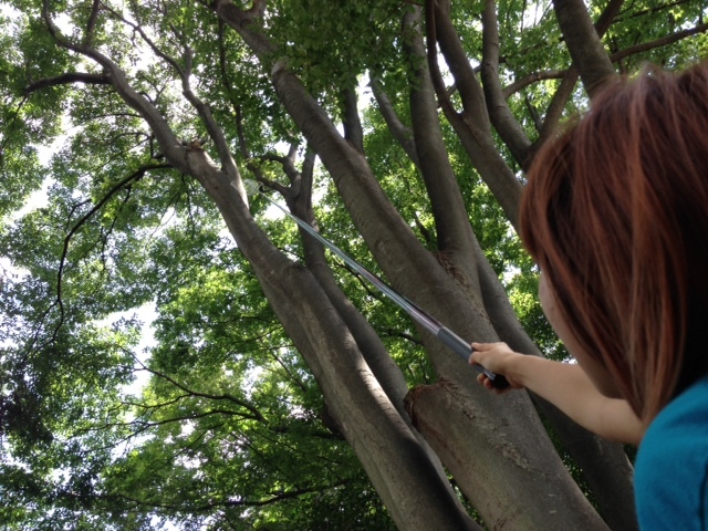 3メートルの虫取り網があれば大丈夫 と思っていたのが大間違い。 エノキは背が高い! 10メートル? 15メートル?