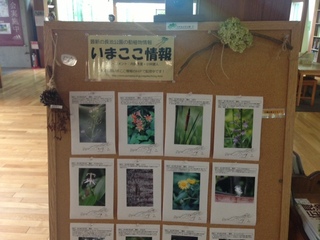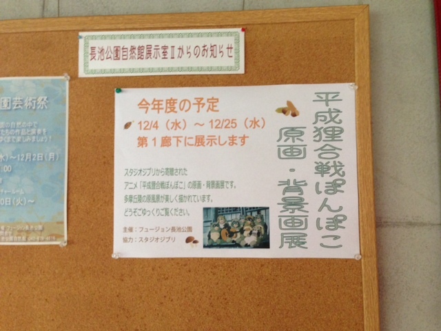 いまどの植物が、どこで見れるか情報をはじめ、 園内に落ちていた、えながの巣とか! ぽんぽこの原画展もあるみたい。 |