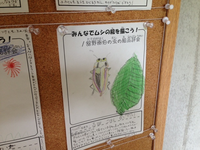 玉虫を発見! と思ったらば… 虫の絵でした! じょうず! この子は、玉虫を見たということだ。 ううううらやましい。