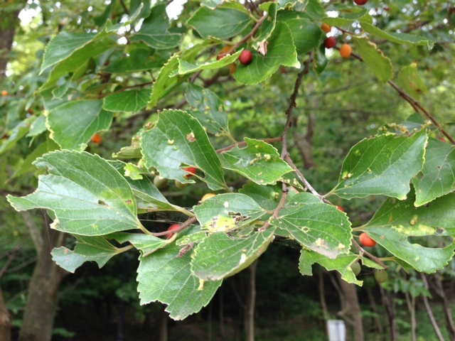 この赤いのが えのきの実です。 このあと、黒くなるそうです。