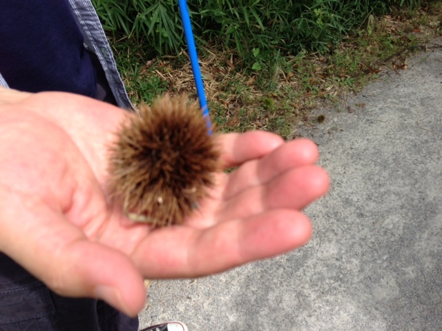 あ、カブトムシ発見です。 メスはもこもこしてて かわいいなあ。 |