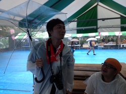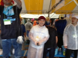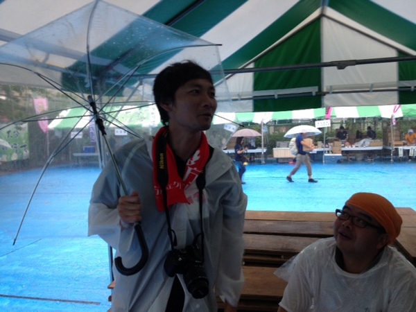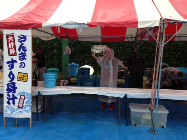 「雨の中、 並んでくださっている方が いらっしゃるんだよね。 予定通り9時から 開会式をやります。 午前中はさんまを焼けると いいんだけど。」 なんとか小降りになってくれると いいのですが… |