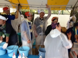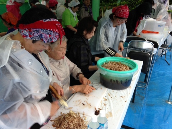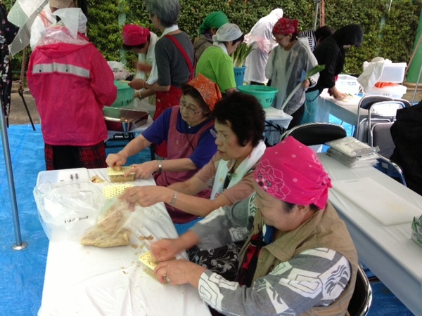 さゆみちゃんがお手伝いをする さんまのすり身汁チーム。