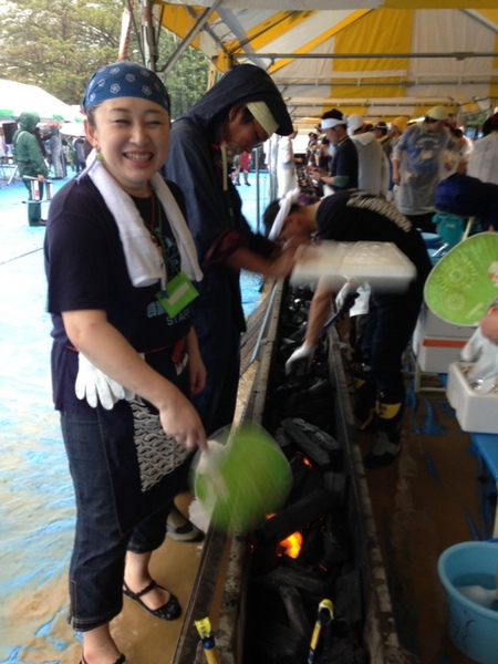 気仙沼さんま寄席でも お世話になっている 畠山カズエさんが さんま焼きの先頭にいます。 |