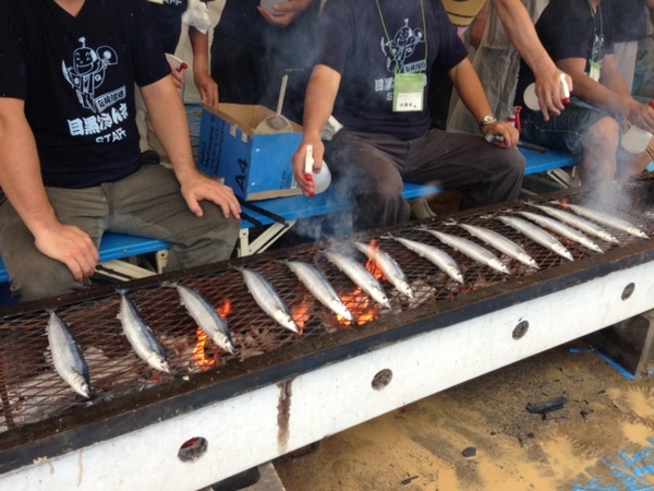 焼きかたはじめーー! の号令で、さんまが網の上に。