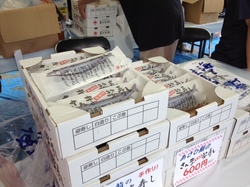 賑わっているなぁと 観光課ブースをのぞいてみると… 去年は、 25分で売り切れてしまったという 気仙沼あさひ鮨さんの 「さんま姿寿し」が。 ひとつ600円。 今なら、まだ 間に合うかもしれません。 食べたいっ。 |