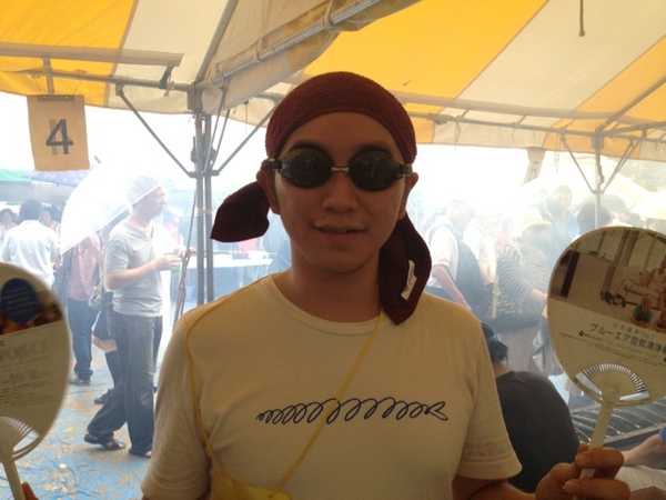 笑顔でさんまを食べる人たち。 最高の雰囲気です。 暑すぎることもなく、 この雨さえも心地いいくらい。 いい景色だなぁ。