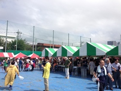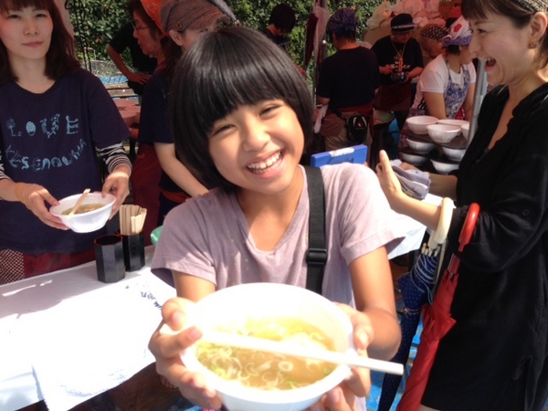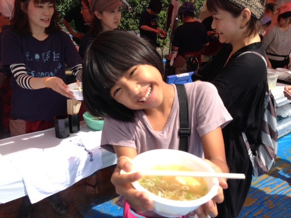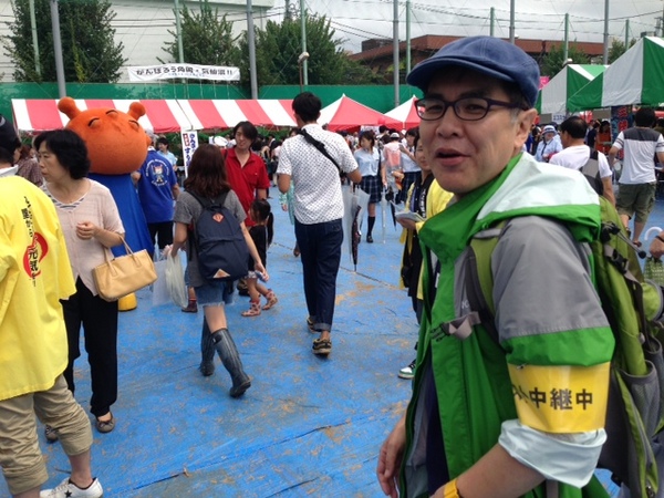 「ことしは厳しいですね。 雨を避けるテントがあるから。 煙が逃げないんです。 息が苦しくて。 でもよかったです、晴れて。 失礼します、昼めしいただきます」