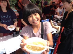 焼き隊のお手伝いをしていた ほぼ日の西田が お昼休憩に入るそうです。 お疲れ! どう? たいへん?