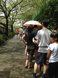 大変良く晴れているのに また強い雨が降り出しました。 まことに激しい狐の嫁入りです。 (なのか?) ついでに、 わたくしも嫁入れないものか! と言いつつ、並ぶのであります。