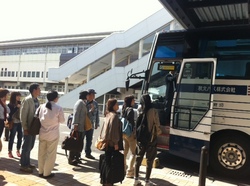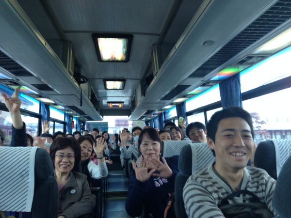 気仙沼に向けてぇー、 (途中、お昼ごはん食べます。 1号車ガイドの ジャンボANDスガノは それがたのしみでなりません) さぁ、しゅうっぱぁぁぁつ〜! |