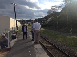 船のうしろがわには、 大船渡線の鹿折唐桑の駅があります。 ひとつ前の気仙沼の駅までの 運行です。