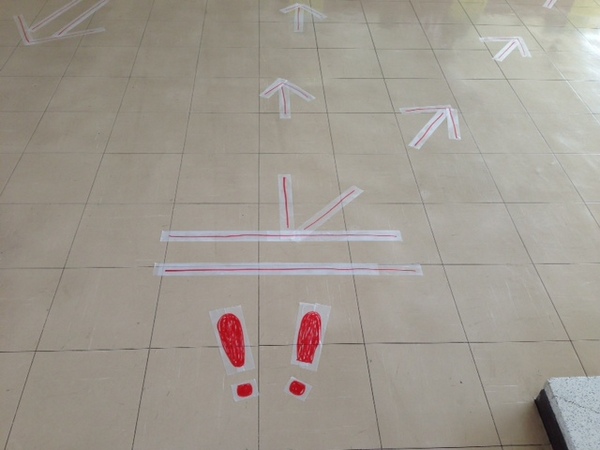 会場にお越しのみなさん、 レジに並ぶときは、 床の指示を見てやってください。 |