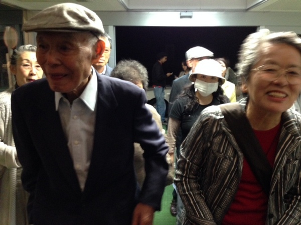 なめろう作りでお世話になった 斉吉商店の貞子さんと健一さんが 腕を組んで市民会館へ。