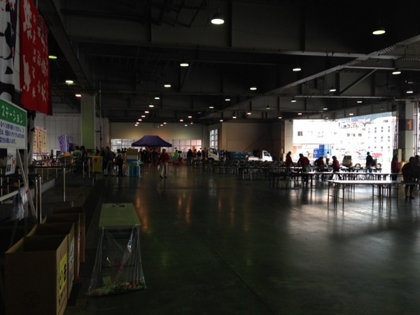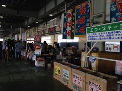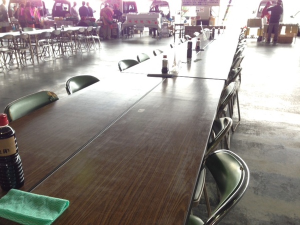 さあさあ、準備がはじまります。 市場で朝めし。 この日のために、気仙沼のみなさんは、 ほんとうに、必死で 準備してきました。 海のカツ資材も到着しました。 |