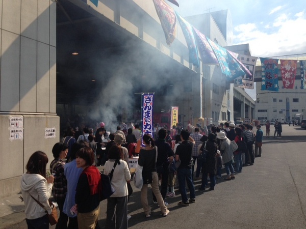 海のカツにかかりっきりだったので、 どんなんなってるかわからなかった のですが、 こんなんなってるなんてーー! 焼きさんまに、 こんなに行列があります。 感動。そして、おいしそう!! ぜっっったいに、おいしいですよ! せんぼうのまなざし‥‥! |