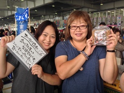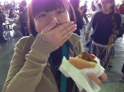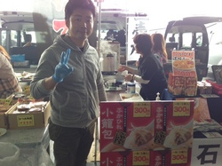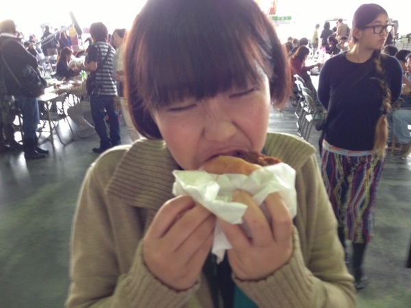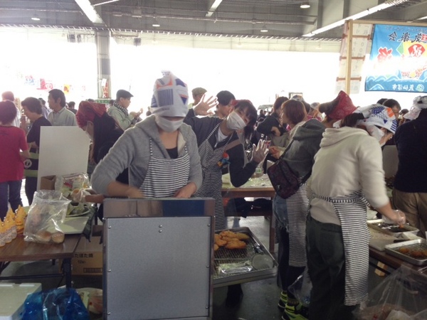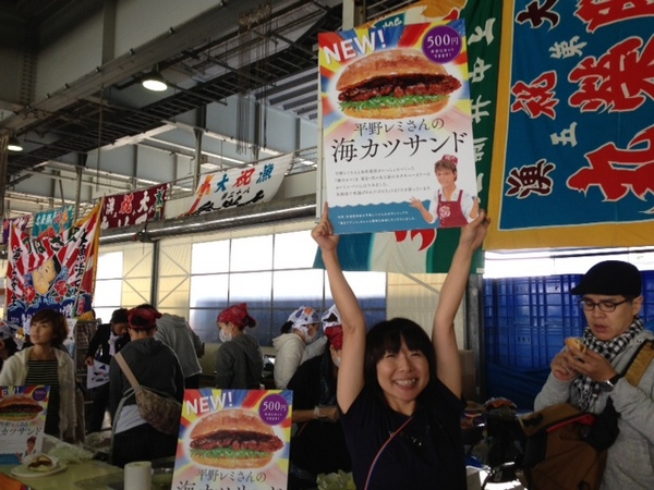 海カツサンドブース、 混み合ってまいりました! バックヤードにカメラ向けても とみちゃんしか反応してくれない。 |