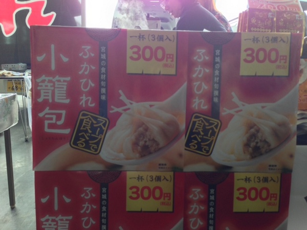 いつもの定番ふかひれ商品にくわえ、 この12月に発売予定の ふかひれ入り小籠包を この朝市でとくべつに販売中とのこと。