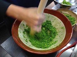 青柚子と青唐辛子を すり鉢&すりこぎですります!