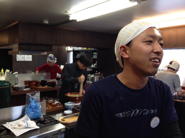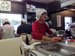 びん詰めの作業のあいだ、 お客さまには ばっぱの台所のおひるごはんが ふるまわれています。