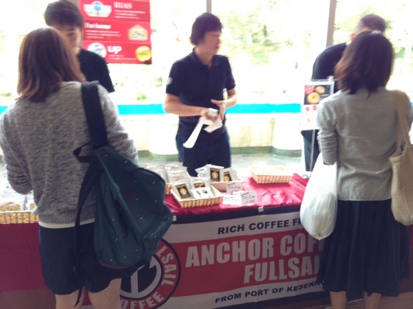 会場の販売コーナーにあの人がいる。 アンカーコーヒーの ユニフォームを着たあの人がいる。