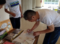 ほぼ日グッズコーナーにも、 立ち寄って見ます。 みんな、ハラマキを巻いている! ということに、 鉄六さん、びっくりです。