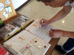 カレンダーにちょいちょいと、 社長が書き込んでいます。 |