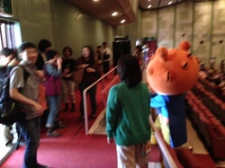 あ、ホヤさん。 また囲まれて、大人気ッスね。 ふむふむ、いまは キビキビしてますね。 けど、さすがに、ホヤさん、 認知されてきたんじゃないッスか? なっちゃう? 全国レベルに? ブレイクしちゃう? クマもん並みに? ん? 「クマもん」? 「くまモン」? ええと、あ、「くまモン」か。
