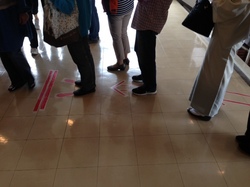 あっ、レジ前の動線が! みなさん、床のサイン通りに 並んでくださってる!