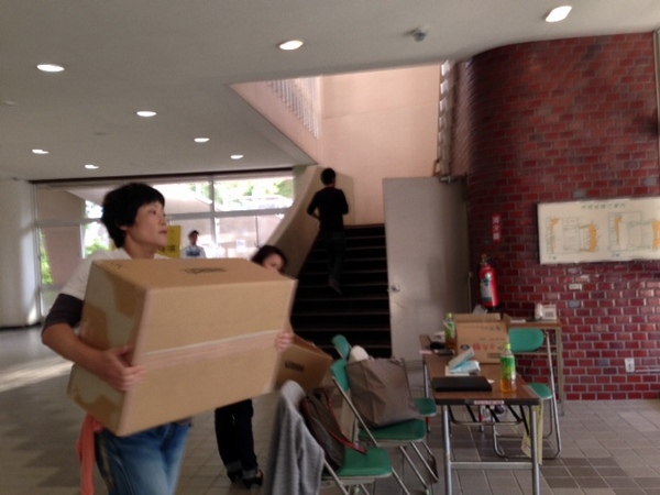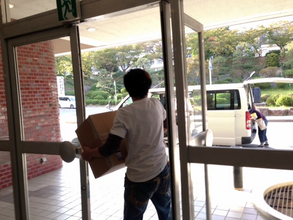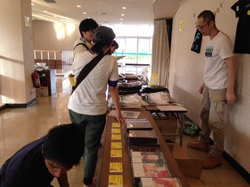 ロビーには志の輔師匠の 高座が始まった音声が聞こえてきております。 そんな中、一同は撤収作業に。 |