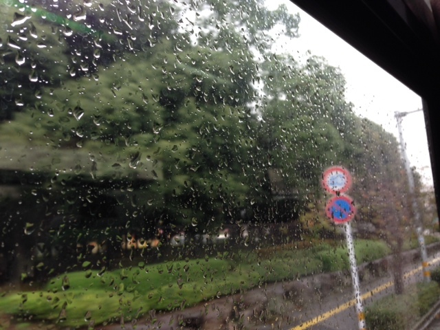 雨です。♪窓ガラスー流れーおちてゆぅーく雨をーー細い指ぃ先ぃでーーなぞぉぉってーゆーーくーーAPUへ向かうバスにて、くちずさむ。