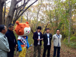 気仙沼副市長の大江さん、徳仙丈のつつじを愛する会の小野寺さん、三角屋の三浦さん、東北ツリーハウス観光協会の道有くん、ホヤぼーや、そして糸井重里が並んでツリーハウスの開始式をしました。道有くんは「ツリーハウスは、よくわからないもの。だからこそ、人がいろんなたのしみを見出してくれんるじゃないかと思っています。どうやって参加しようかとみなさんが考えてくださることがこのプロジェクトを育てます」と、あいさつしていました。(スガノ)