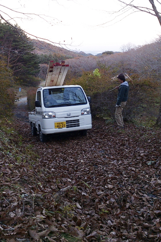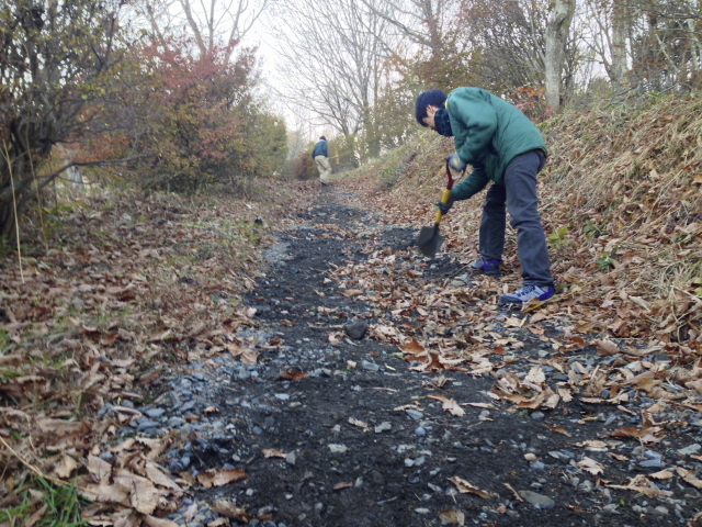 スコップ片手に道を補修しました。