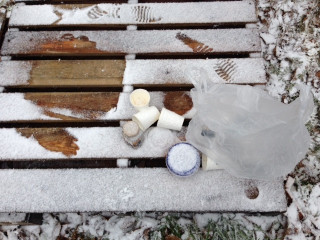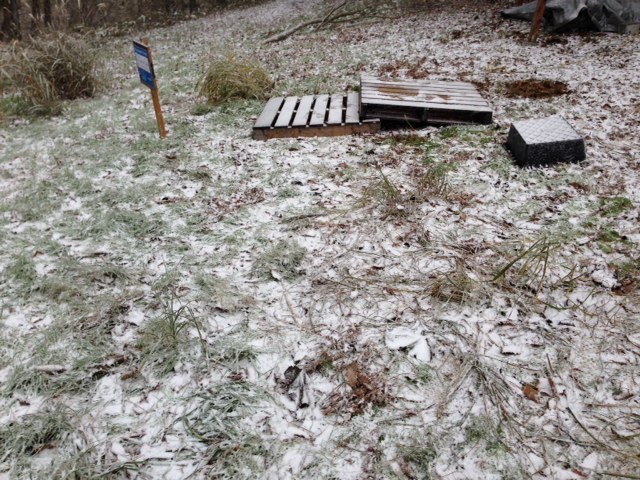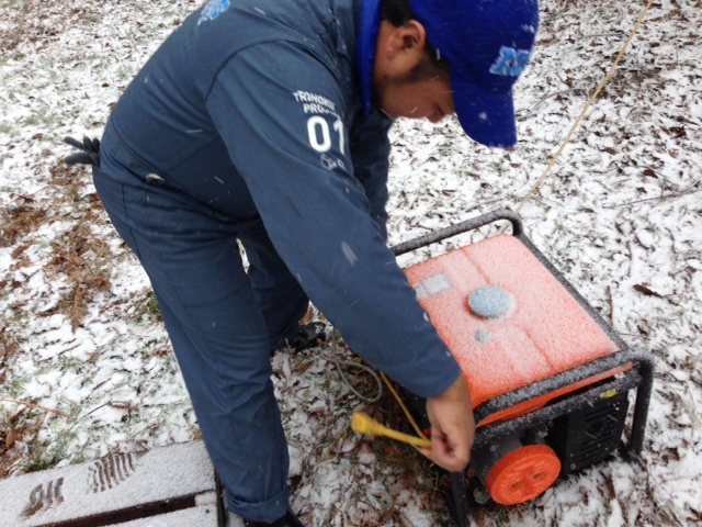 さらに降ってきまして、つもりだしました。慌てて、機材にカバーをかけて、車で「待ち」状態です。お願いなんで、やんでください!朝、飲んでたコーヒーのなかにみぞれが入って、「フラペチーノ」みたいになったよ。(ぐっさん)