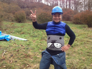 ほぼ日のハラマキチームから、ハラマキが届きました。いや、ほんっと寒いんですよ?!動いていればいいんですが、止まった途端に寒くなる。じまくんにハラマキをわたしたところ、どうです! このピッタリ感!ふくよかさも兼ね備えた、ポテンシャルのあるおなか。お似合いです。そしてあったかいです。ありがとー!(ぐっさん)