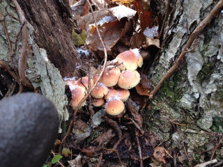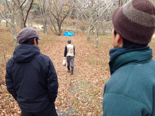テントを張り終えたころ、ガサッ、ガサッっと落ち葉を踏みしめながら「お、この辺ね、キノコがあるんだよ」と、おじさんがスーパーの袋にキノコを入れて登場。「食えんのすか?」と問うてみましたら、「うんだ。栗茸(クリタケ)だ」と生えてるところを見せてもらいました。僕が抜いたキノコも袋に入れて、そのまま帰って行きました。(みちあり)