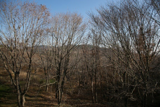 1号のツリーハウスのデッキから見た景色は、写真で取るとなかなか伝わらないんですが、こんな感じです。上がデッキの上からまっすぐ見た状態。下がデッキの下からまっすぐ見た状態今はもう落葉してしまってますが、ここに緑の葉っぱがあると想像してごらんよ。素敵だね。(ぐっさん)
