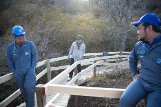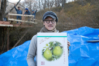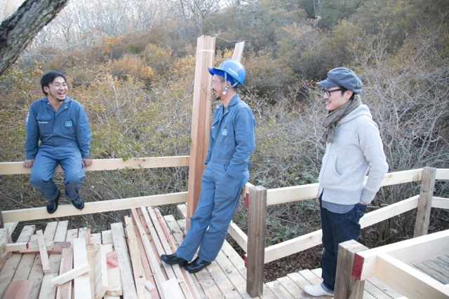 けんちゃん、シュウメイくんと同級生で、今は山形で働くゆうや君が遊びに来てくれました。山形から車をかっとばして、果物の女王、ラ・フランスを持って。(ありがとう!)今、ゆうや君は佐藤繊維という糸から製品まで作る山形の会社で、ニットのデザイナーをやってるとのこと。ん? ニット?大分に住んでる人、山形に住んでる人、いままであったことのある人達が、ツリーハウスめがけてきてくれるとは、あぁ、なんて。それにしてもあれだね、幼なじみの再会はたっのしーね!(ぐっさん)