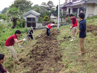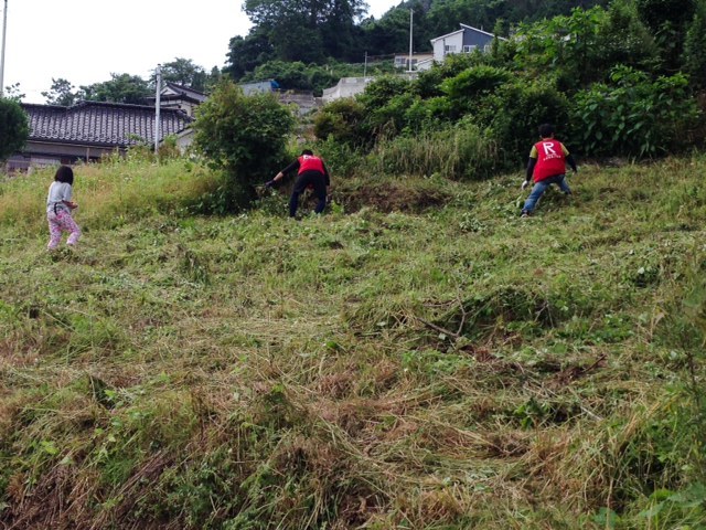 徳仙丈のツリーハウスを見学した立命館大学のみんなは、今回のプロジェクトの舞台唐桑町鮪立(しびたち)へ。さっそく男子は草刈りに!女子はワークショップチームで地域のリサーチをしたり、アイデアを出しあったり!いよいよはじまりましたね!(みちあり)