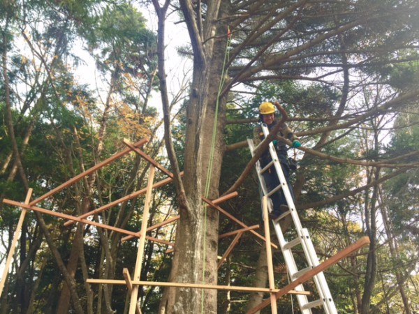 今日は枝の剪定や、じっさいのモミの木でツリーハウスのイメージを組んでみました! まこっちゃんと並べてみるとこんな感じです。 ツリーハウスは机上で設計図を引くよりも、樹上や地面を行ったり来たりして、イメージをつくります。 その場所の特徴がだんだん体に馴染んでくると、気がつくこともどんどん増えます。 「はまわらす」の子どもたちもアイデアスケッチをばっちり描いてくれました!(みちあり)