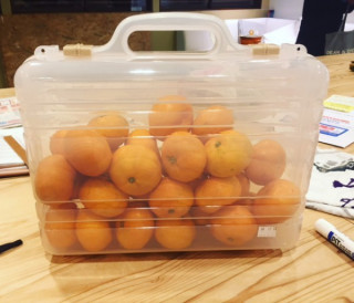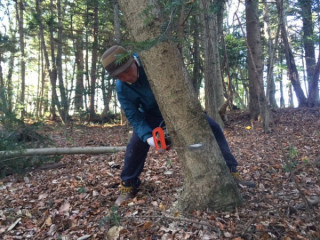 ツリーハウスづくりの敷地内で間伐をしているはまわらすのカサハラくんに、材料となる樹の伐採を手伝ってもらいました。 伐採って緊張間があるんですよね〜。周囲の状況や木の特徴をみながら慎重に作業しています。1本目はみごときれいに伐倒できました!その後はあえて書きませんが・・大仕事でしたよ〜。 帰りに甘いみかんのお裾分けをもらいました。入れ物がまた良いですね。 (みちあり)