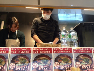 店番中のわたくしですが、ついふらふらと西和賀町の納豆汁ブースに来てしまいました。いいにおい。なかにめちゃでかいキノコが入っててめちゃうまかったです。飲んでよかったー。飲まなくて帰ったらこりゃ後悔だよ!(スガノ)