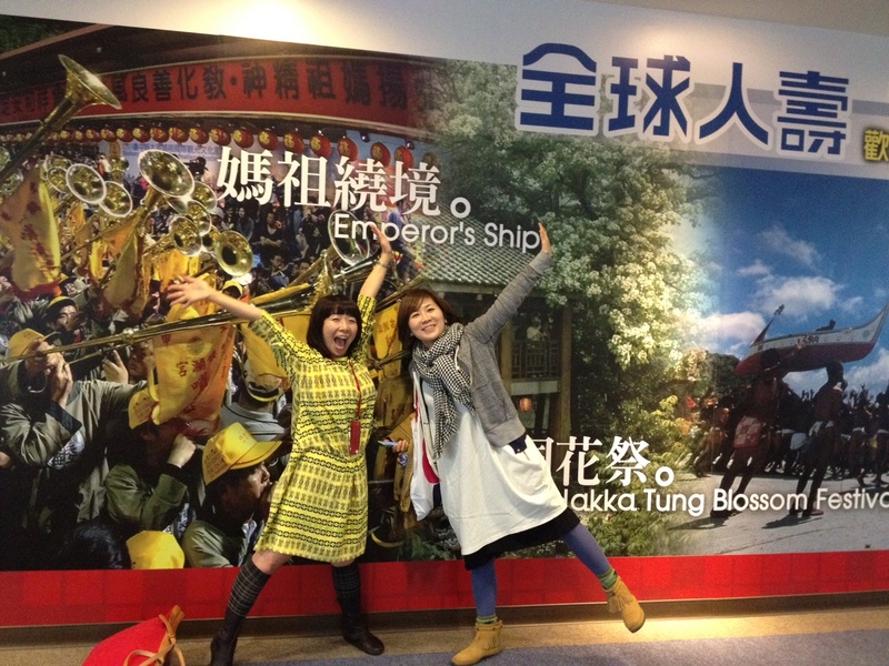 台湾っぽい背景でも記念写真を。 わーい、楽しみー!! |
